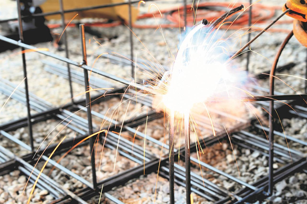 鉄骨などの鉄材はその場で必要な長さで切断し、溶接によって組み上げられていきます。